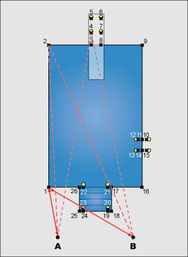 Measure from A to 1 and from B to 1, then from A to 2 and B to 2, and so on. Write the measurements on the A-B Measurements page.
