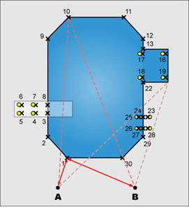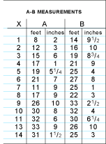 Measure from A to 1 and from B to 1, then from A to 2 and B to 2, and so on. Write the measurements on the A-B Measurements page.