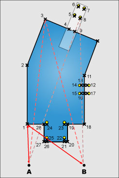 Measure from A to 1 and from B to 1, then from A to 2 and B to 2, and so on. Write the measurements on the A-B Measurements page.