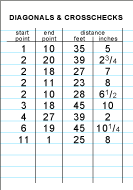 Measure diagonals and other distances (crosschecks) between far-apart points. Measure up to ten lengths and write them on the Diagonals & Crosschecks page.