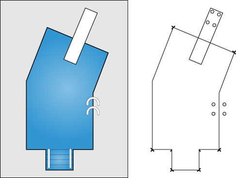 On your sketch, put an X at every corner point. Note any diving boards, legs or rails with circles.