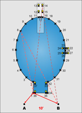 Measure from A to 1 and from B to 1, then from A to 2 and B to 2, and so on. Write the measurements on the A-B Measurements page.
